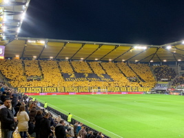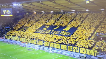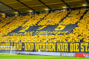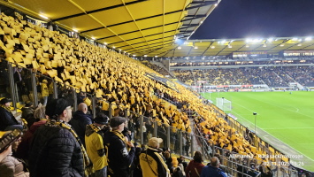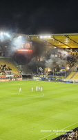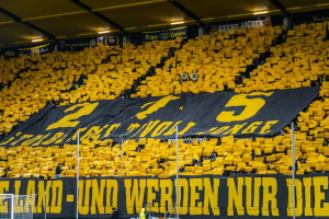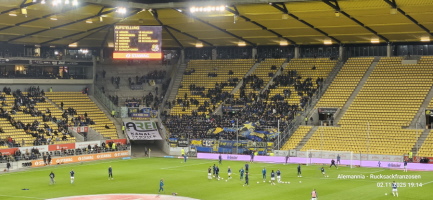 Vor dem Spiel gegen den FC Saarbrücken, welches wir auch noch (etwas schmeichelhaft) mit 2:0 gewann, konnten wir im Stehbereich unsere Choreo zum 25jährigen Bestehen präsentieren. Die Spannung in den Wochen, Tagen und Stunden davor war auch schon unerträglich geworden. Umso schöner war es dann zu sehen, wie das, was im Kleinen projiziert, gezeichnet und gemalt im Großen doch toll aussah. Es hatte funktioniert! :-)